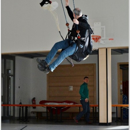Der Rettungsschirm, jeder muss ihn beim Gleitschirmfliegen dabei haben. Er kann dein Leben retten, und doch wird er oft von vielen Piloten mit am " stiefmütterlichsten" von allen Ausrüstungsteilen behandelt. Getreu dem Motto " Am besten ist es,wenn ich ihn nicht sehe ". Dabei kann es in entsprechenden Situationen den entscheidenden Vorteil bringen, wenn man das richtige Auslösen des Notschirm regelmäßig trainiert. So lässt sich dann im Ernstfall der Ablauf zum Werfen des Rettungsgerätes routinierter abrufen. Wir üben dieses in der Turnhalle und simulieren dazu in verschiedenen Übungen den Rettungsgeräteeinsatz.