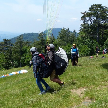 Es gibt vermutlich kein Gleitschirmpilot, der seinen Freunden und Bekannten nicht schon einmal vom Fliegen mit dem Gleitschirm mit funkelnden Augen und einem Lächeln im Gesicht berichtet hat. Viele Piloten wollen dieses Erlebnis gerne mit "Fußgängern" teilen. Mir einer zusätzlichen Ausbildung können bereits lizensierte Piloten die Berechtigung zu Passagierflug erlernen und erwerben. Bevor jedoch die Ausbildung in der Flugschule erfolgen kann, muß der angehende Tandempilot "seine überdurchschnittlichen fliegerischen Fähigkeiten" im Alleinflug nachweisen. Dies erfolgt bei einem Eingangstest vor einem vom DHV beauftragten Prüfer. Weitere Informationen zum Eingangstest findest du hier .